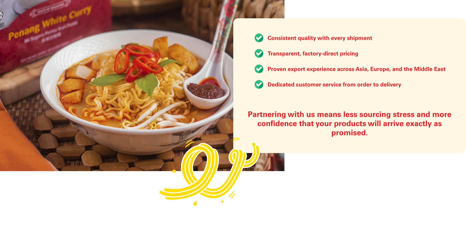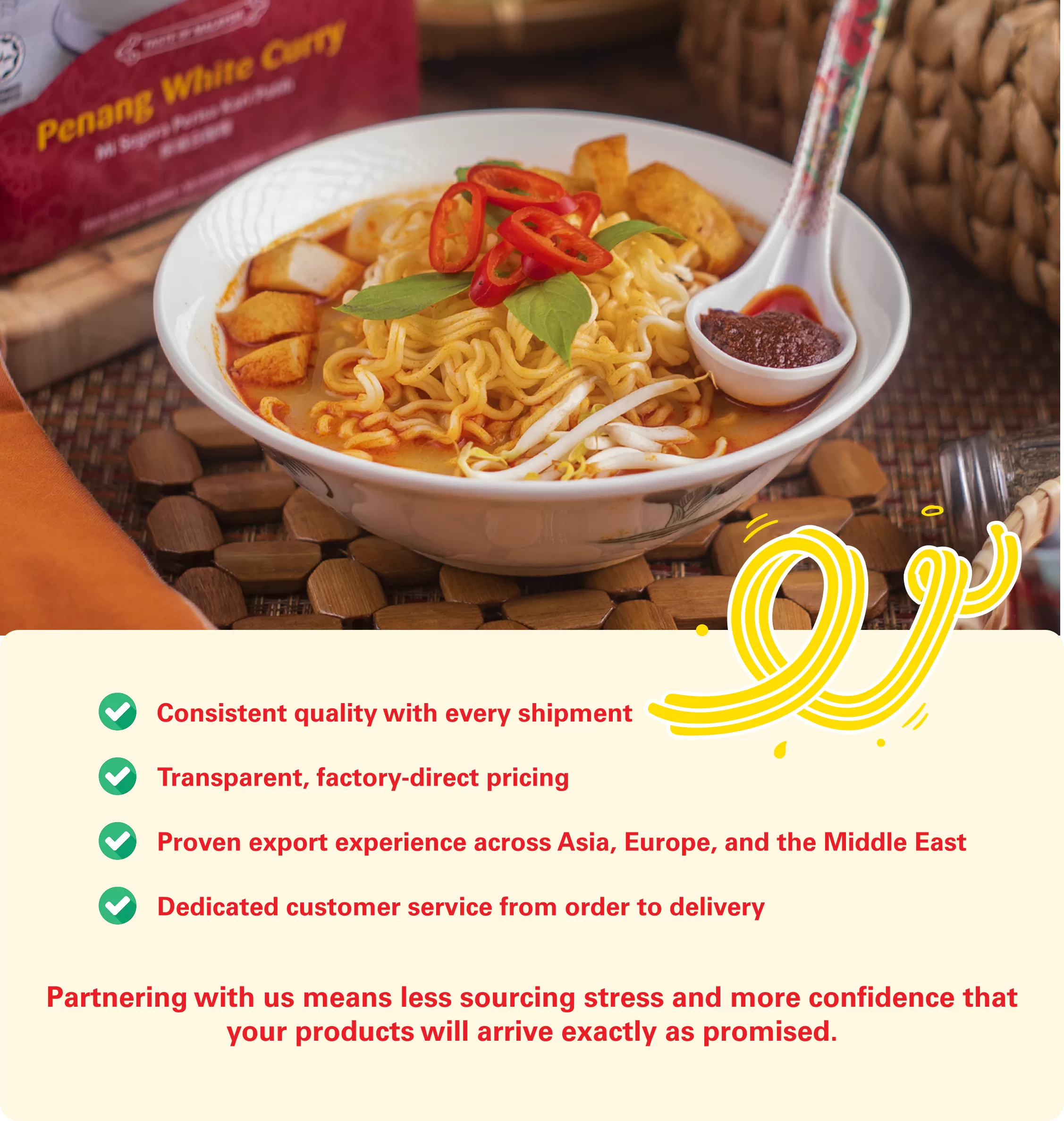Trusted by distributors, retailers, and importers worldwide for high-quality, reliable instant noodles at factory-direct prices.